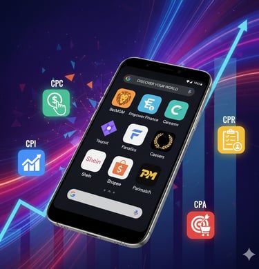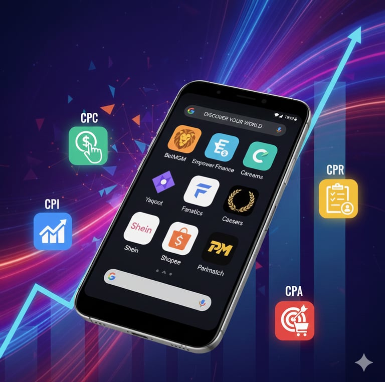 Boost your app growth with tailored CPC, CPM, CPI, CPR, and CPA campaigns.